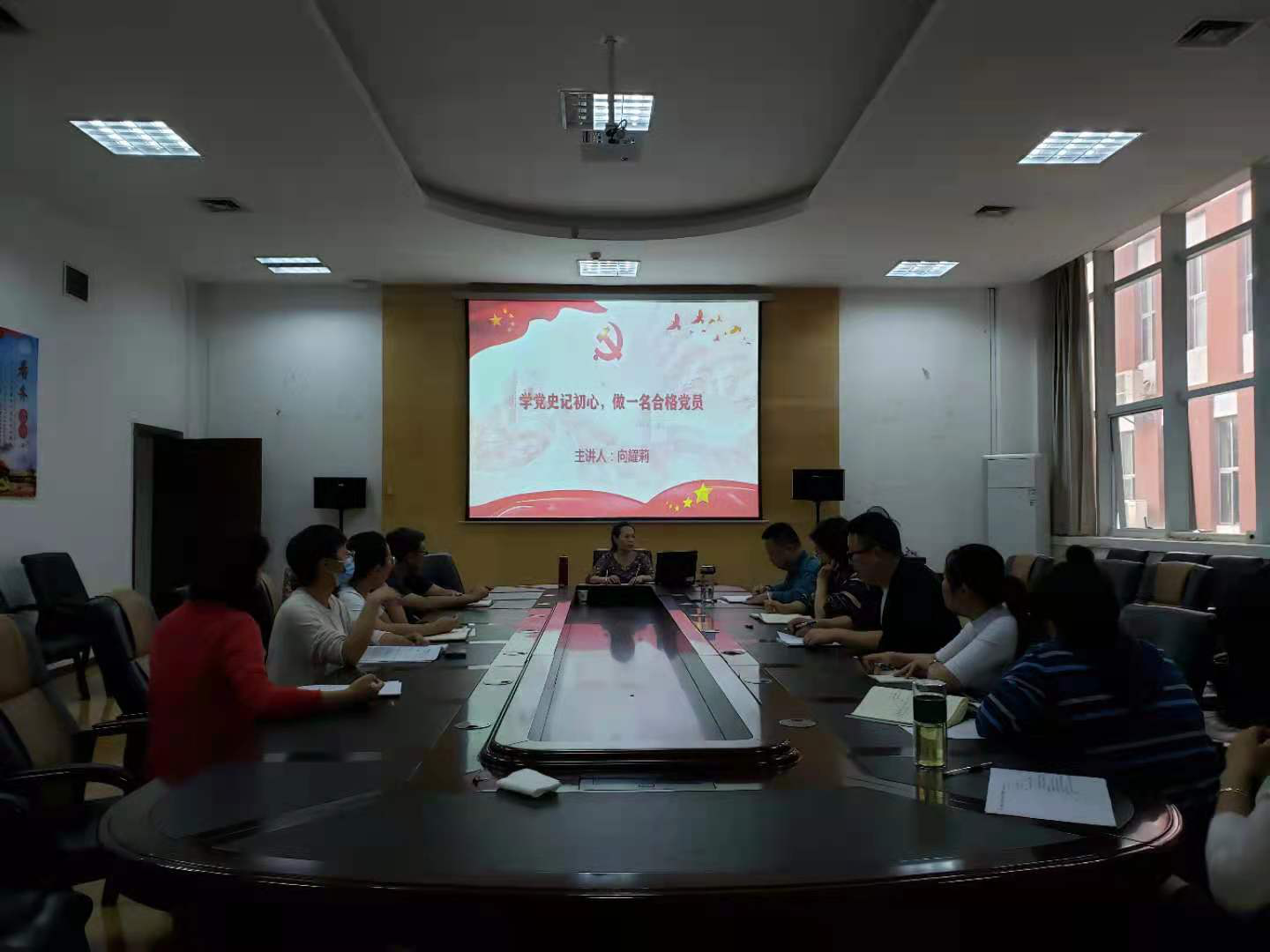 2021年6月21日,篮球赔率 设计系教工党支部书记向耀莉同志在会议室为设计系教工党支部全体党员开展“学党史记初心,做一名合格党员”主题教育专题党课。内容主要围绕学习党史的意义展开。