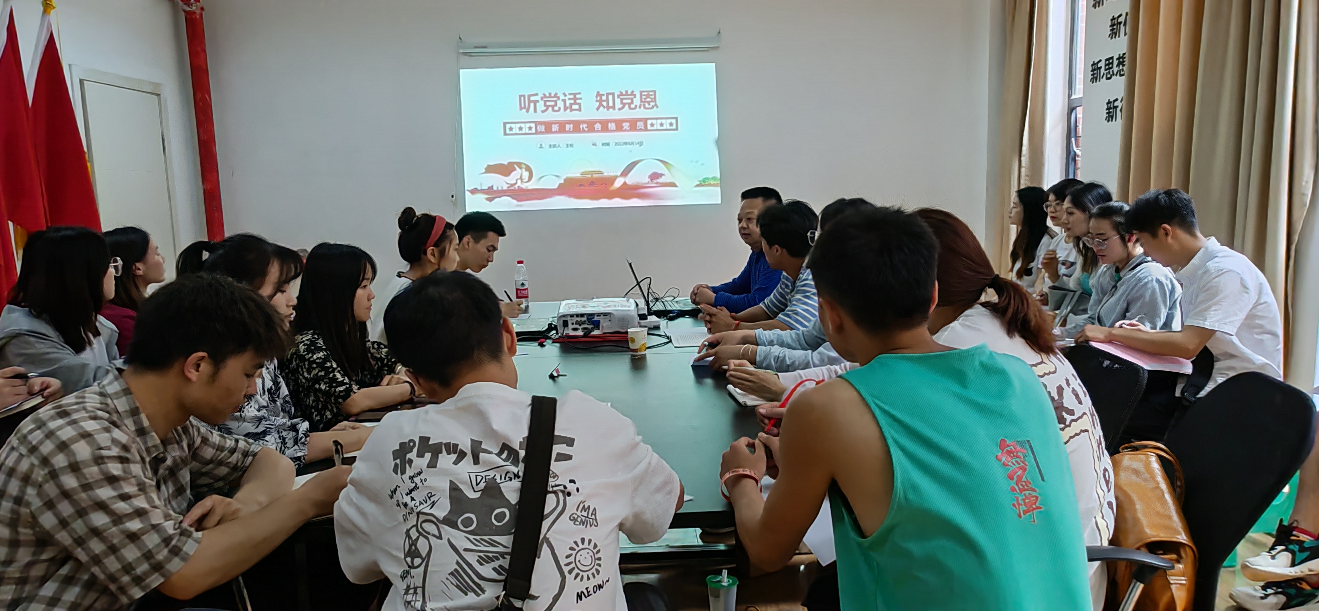 学生第二党支部的全体党员上题为《听党话 知党恩 做新时代合格党员》的专题党课。