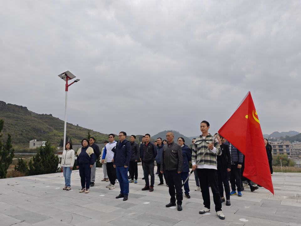 书记唐文杰带领全体教师重温了入党誓词。随后讲解员为大家介绍了1935年红军长征经过花溪高坡的历史。