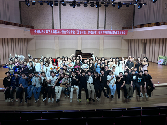 202566日晚,篮球赔率 2022级音乐学专业夏音初绽·律动四季钢琴即兴伴奏范式改革音乐会在贵州财经大学学生活动中心音乐厅精彩上演。本场音乐会以创新即兴伴奏为核心,通过多元曲目演绎和跨风格改编,展现了学生扎实的专业能力与艺术创造力,为观众带来了一场别开生面的视听盛宴。