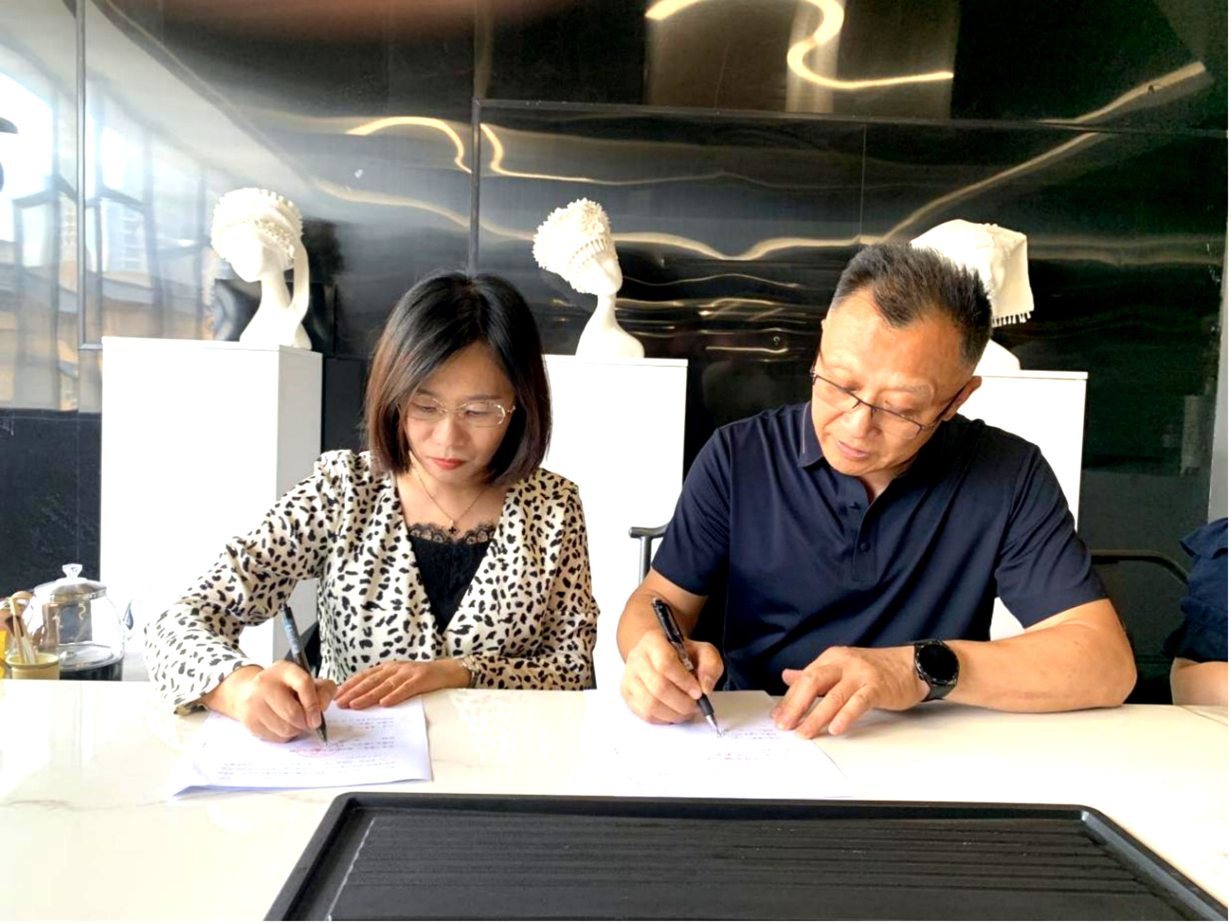 可通过产学研合作,将贵州传统工艺元素融入艺术设计课程,开展非遗工艺创新实践项目,培养学生对本土文化的认同感与创新设计能力;同时,期望与贵州工艺美术馆建立长期合作关系,共同搭建实践教学基地,会议上陈秀波副院长与贵州省工艺美术协会秘书长、贵州工艺美术馆馆长黄向阳先生签订了教学实习基地协议书,为学生提供更多接触传统文化、参与行业实践的机会。现场交流气氛热烈,达成多项合作意向。