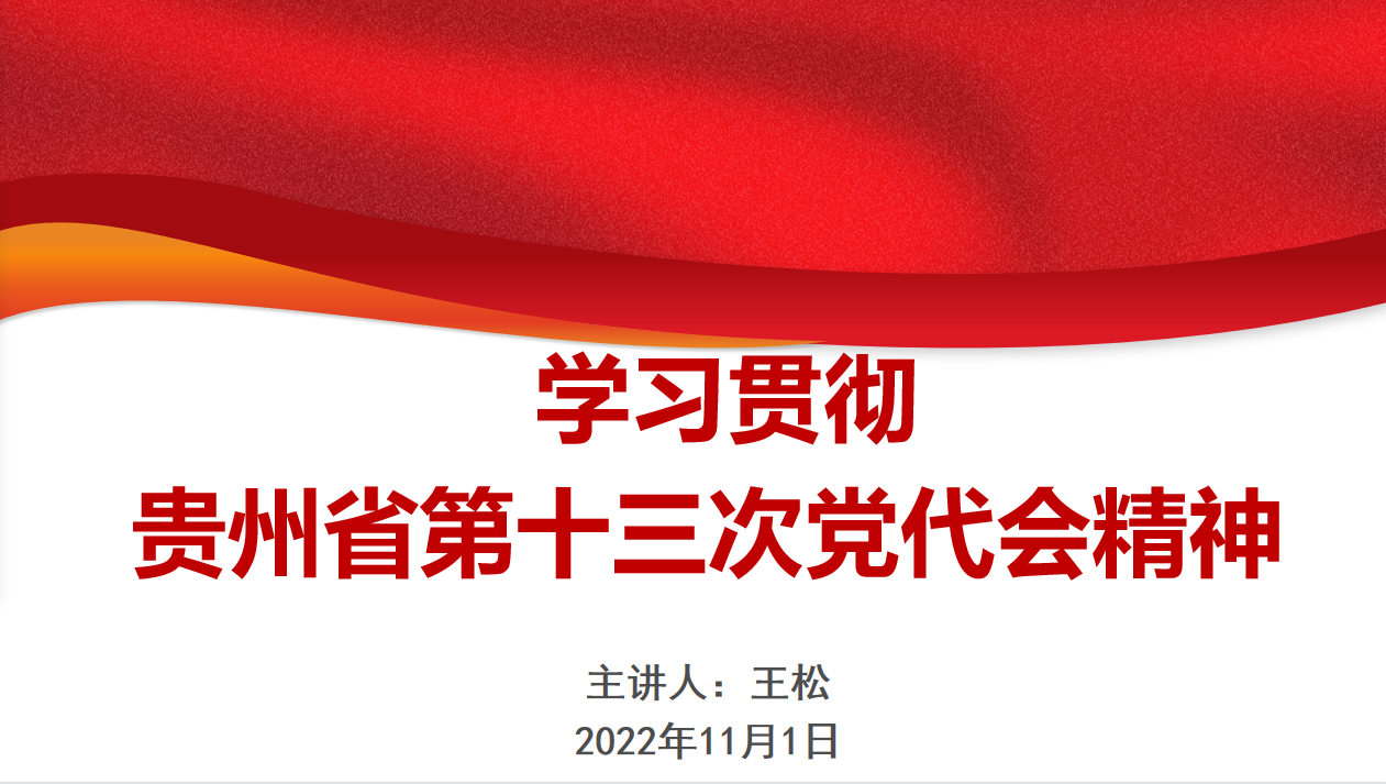 王松围绕贵州省第十三次党代会情况、深入学习省第十三次党代会精神、奋力谱写多彩贵州现代化建设新篇章等方面进行介绍。主要对大会主题、大会主旨灵魂、大会报告主要内容进行讲解。重点对大会报告中对过去五年八方面历史性成就和六条宝贵经验、今后五年的工作总体要求和六大奋斗目标和七方面重点任务、丝不动摇加强党的建设,奋力谱写多彩贵州现代化建设新篇章进行了解读。
